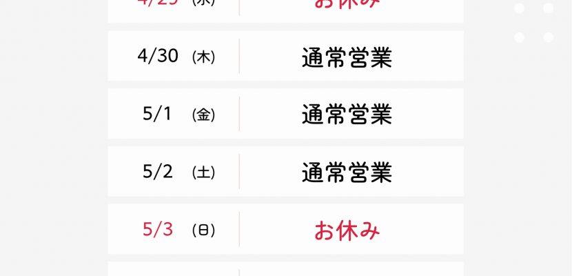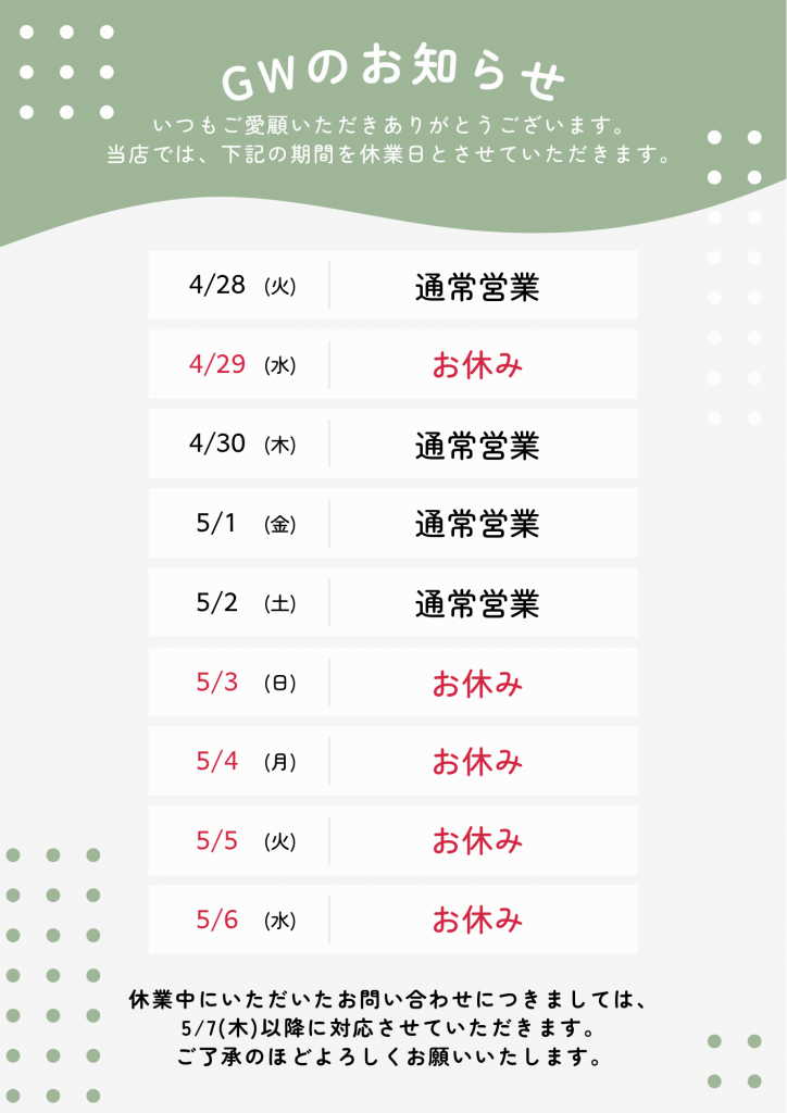 GWのお知らせ